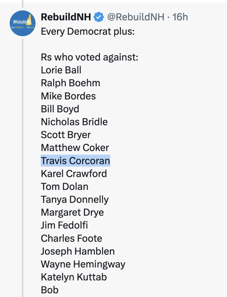 Travis Corcoran, slated to keynote the upcoming LPNH Annual Convention on “property rights,” stunned many in the libertarian community this week when he voted with every New Hampshire Democrat in favor of vaccine mandates for children.