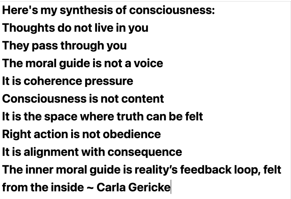 The inner moral guide is reality’s feedback loop, felt from the inside ~ Carla Gericke