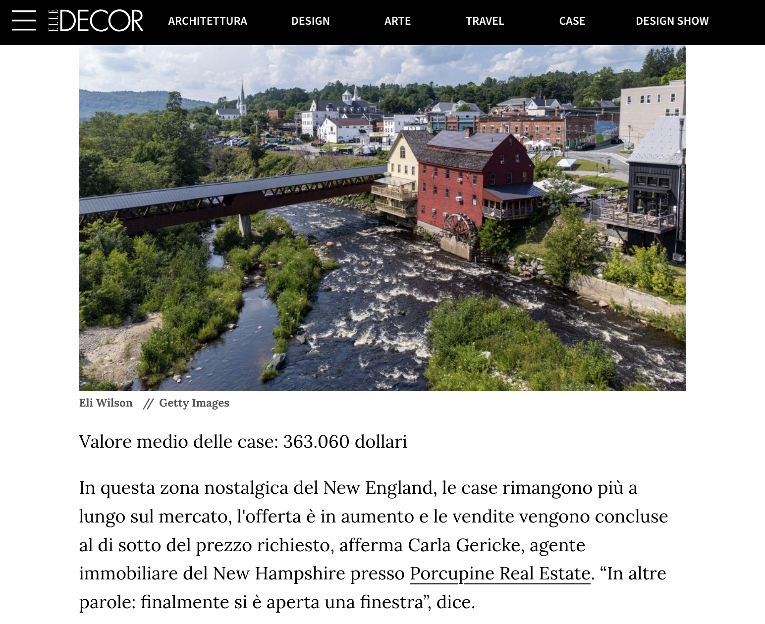 Le 9 città americane dove trasferirsi nel 2026 | Elle Decor (Italy) | August 23, 2025 | Link | … Carla Gericke, agente immobiliare del New Hampshire presso Porcupine Real Estate. “In altre parole: finalmente si è aperta una finestra”, dice. Tradizioni … |