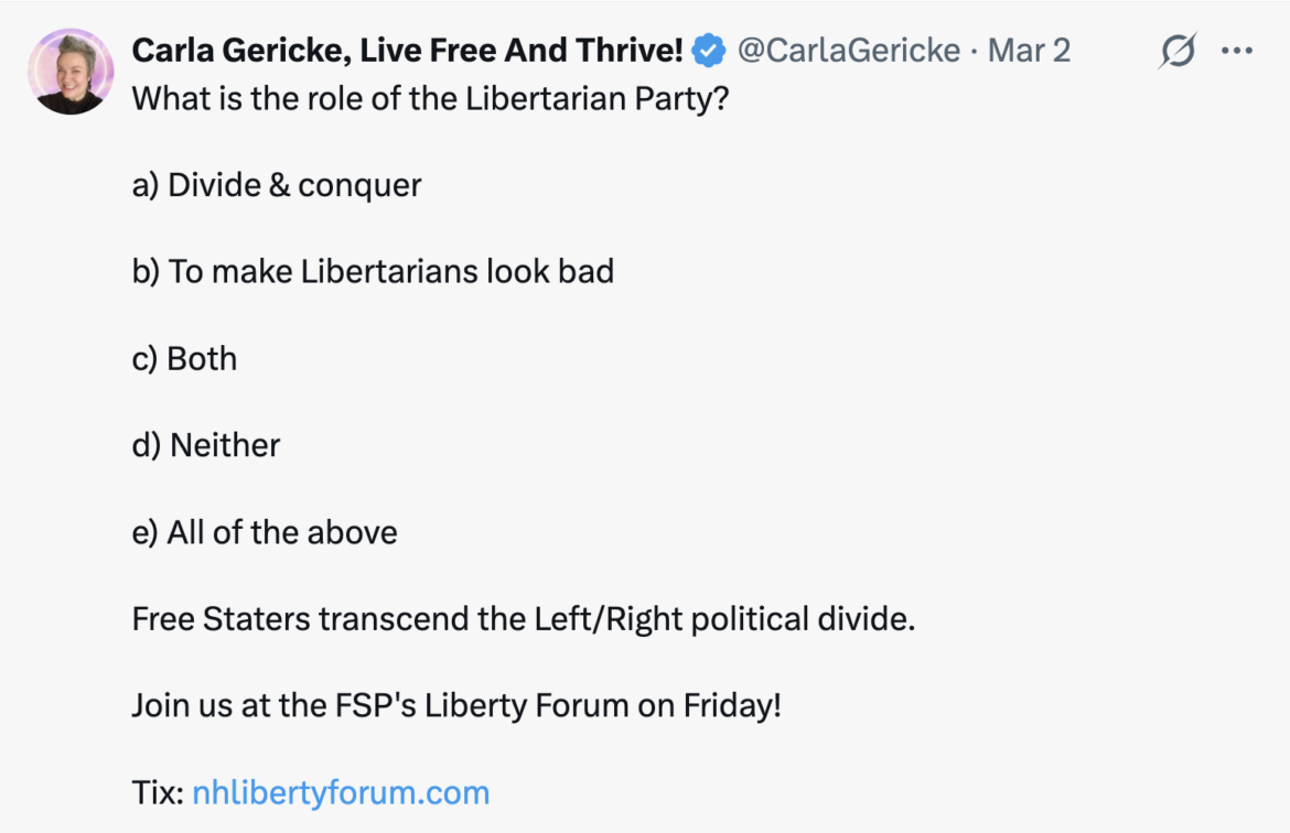 Let’s get back to that. Let’s get back to our roots. Let’s get back to being Free Staters, not “Libertarians” fighting on the fringes.